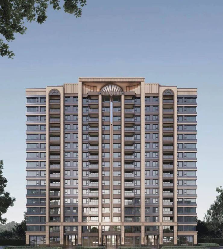 初览海阅首府三段式经典建筑立面,其浓郁的海派风情令人震撼,现代工艺与材料扎实而和谐相融。基座部分采用石材及铝板、不锈钢等高品质材料,主体立面以竖向线条为框架,搭配铝板,展现出端庄大气、典雅精致之美。