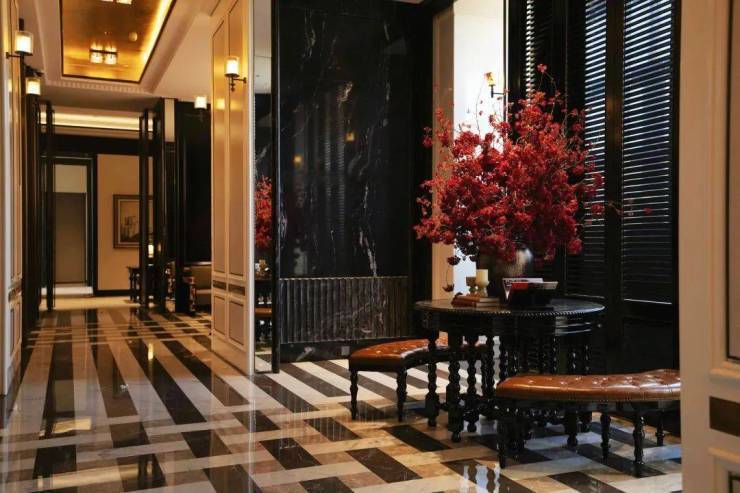 进入正门后是奢华酒店式落客区,头顶之上,看着风情穹顶,一眼穿越到和平饭店的八角玻璃穹顶之下,对标半岛酒店的落客区,让独家君有一瞬间,觉得自己从“阿宝”变成了“宝总”。