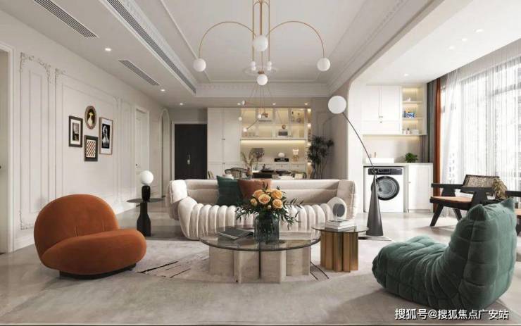 ②低奢材料小面积使用即可,使用太多则会造成视觉审美疲劳,失去家的温馨氛围感。