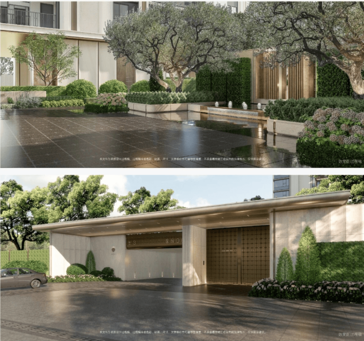 项目打造现代海派风格的外立面,线条简洁大气;社区规划六重生活体验空间,从酒店式落客入口、镜面水庭到美学花园,旨在将高端酒店的奢享基因融入日常生活。