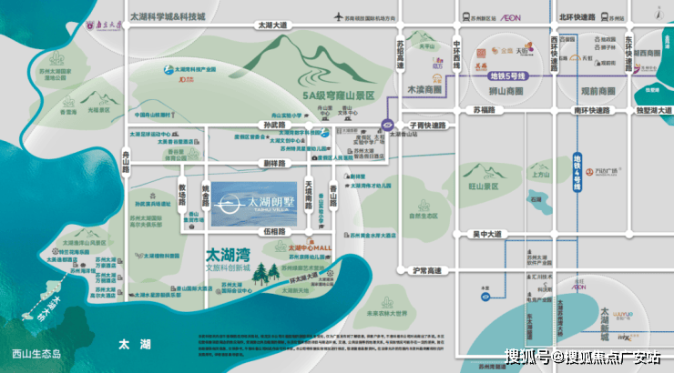 左手攥着穹窿山、太湖湿地公园两大5A景区,右手抓着中环西线、地铁5号线双动脉。20分钟飙到狮山CBD,10分钟上高架,通勤半径与园区高层无异,却多了一重“推窗见湖,转身入林”的奢侈——