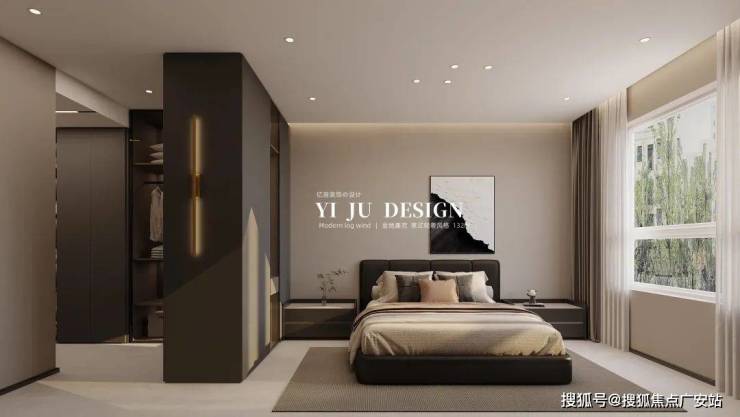 卧室以柔和的莫兰迪色为背景,通过材质的巧妙搭配与智能化设计,将功能性与艺术感完美融合。在这里,深色不再是沉闷的象征,而是承载着家人温馨回忆的温暖港湾。
