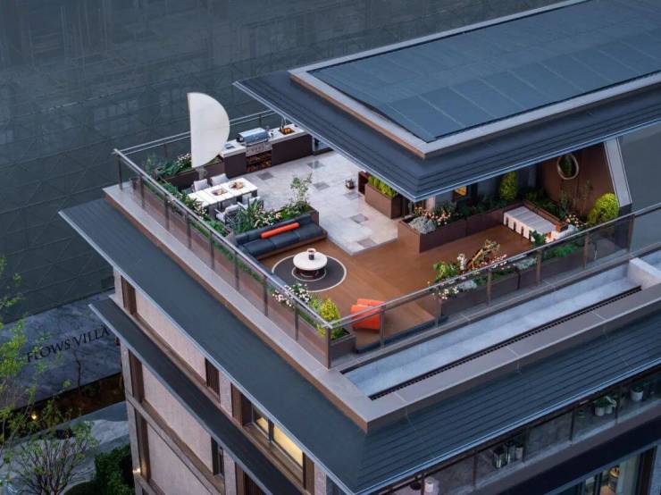 更令人向往的,是上叠的大面积屋顶露台。它是星空观景台,也是屋顶花园,既能举杯畅谈,也能静赏四季流转,把生活推向更诗意的层面。
