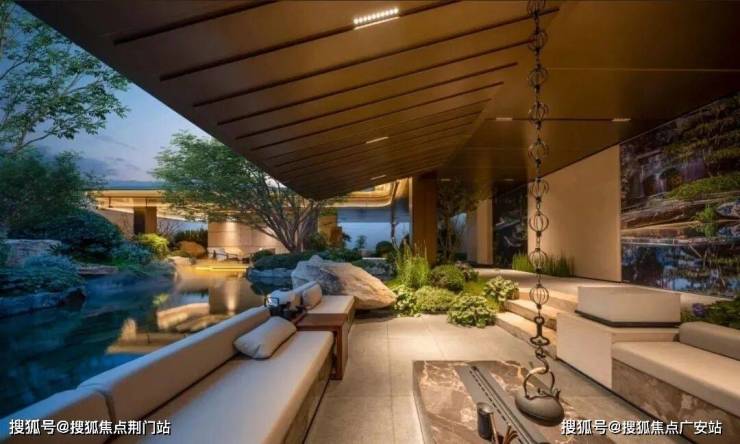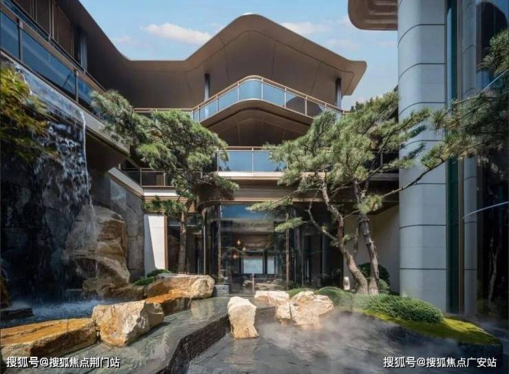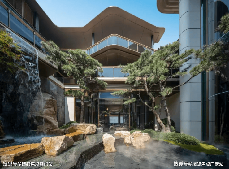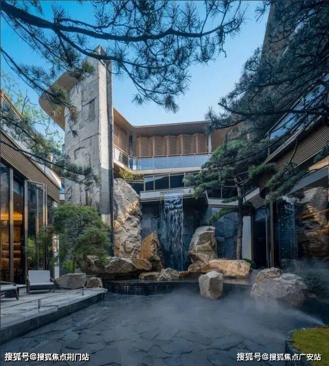 景观则借鉴西湖郭庄,于空间和场景的构建转换之中,植入水、石、松、亭、轩、瀑、桥等一系列传统园林符号,通过精妙的组合,营造充满诗意的栖居环境。