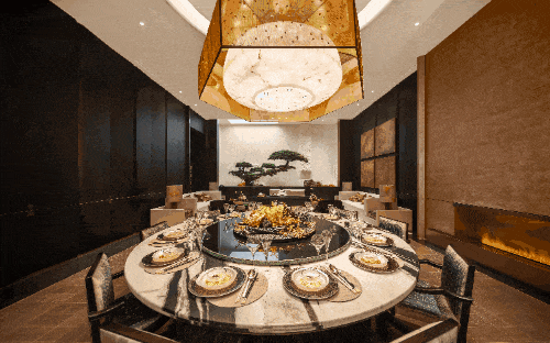 又如立面的呈现,如果说玻璃与铝板的结合诠释了现代建筑的轻盈时尚,那么陶板与石材的点缀,则为建筑注入了东方古韵,再加上如意云纹金镂格栅、寻杖勾栏、避风䈋等宋代元素的创新转译,更增添了建筑的文化韵味。