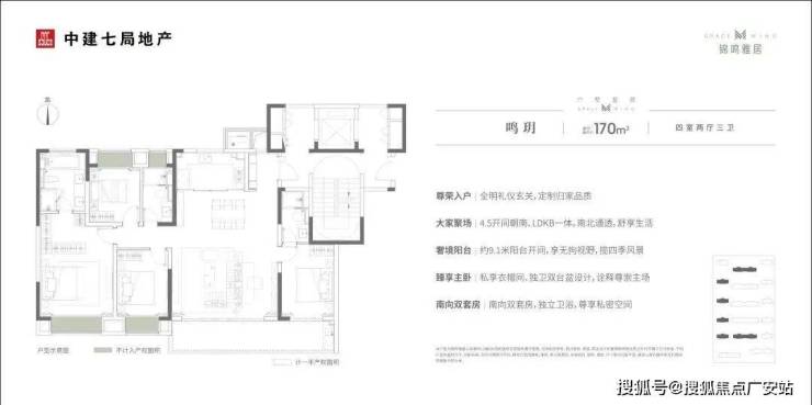 建面约143/170/203㎡户型,四室格局,南北通透;南向大面宽,双联景观阳台,