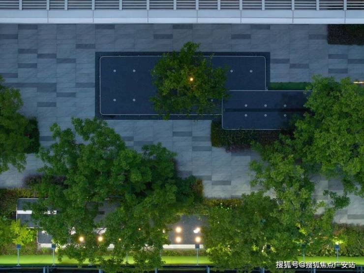 同时,社区内部景观打造了大面积的叠级水景,搭配普拉达绿大理石和浪淘沙石材,呈现整体空间的隐奢基调。