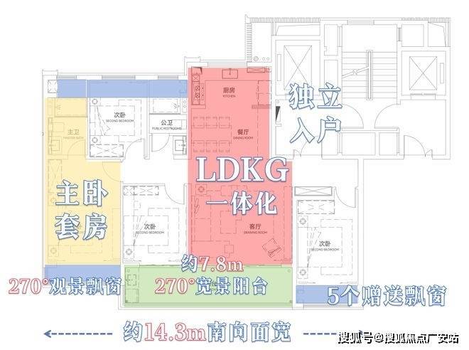 【建筑面积约143㎡户型】,从菁英圈层生活和改善人居品质出发。宽阔的四室设计,主要功能空间全部朝南,达到了市面上160㎡户型的空间舒适感,圈起了一家人的幸福。