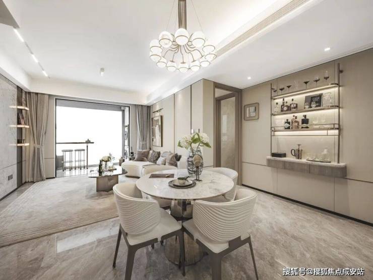 除此之外,酒店式迎宾大堂,仪式感归家入口,温情社区的重要展示;泛会所客厅,通过营造视线关系的尺度与对景的舒适度,营造精致时尚的仪式归家入口空间。