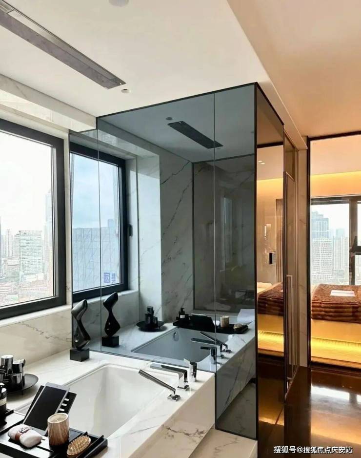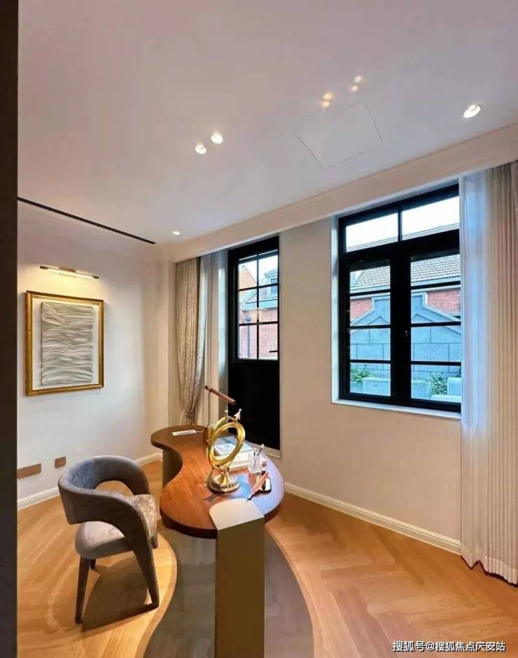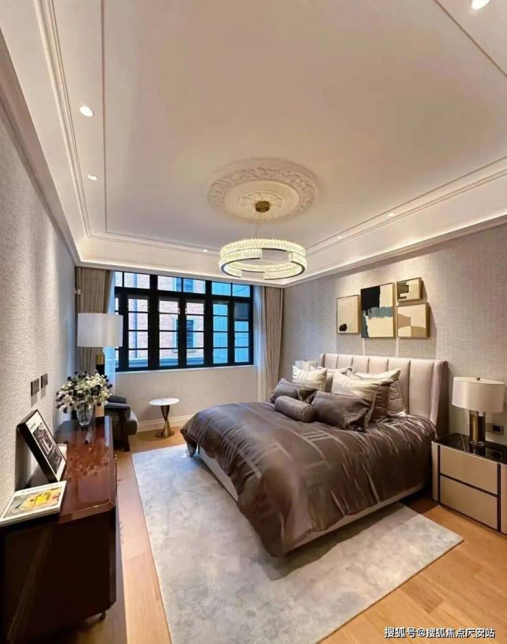 私密场域依旧保持静谧,黑白色基础上搭配了更多的色彩,例如深棕、浅紫等,艺术品的衬托深邃迷人,热络了家的氛围。