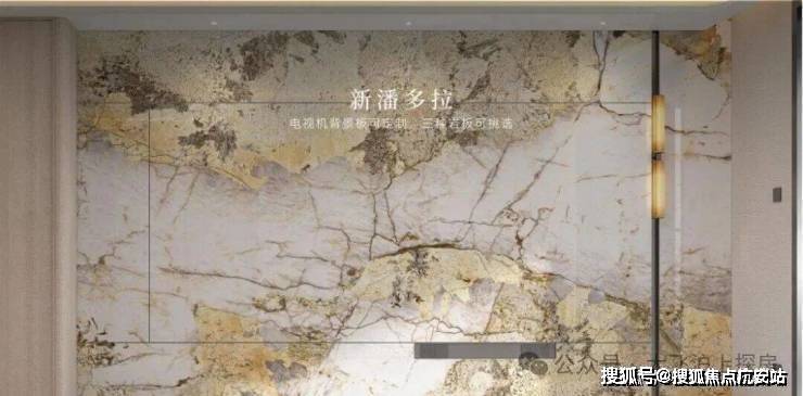 充分考虑业主的个性化需求,在电视背景板提供了新潘多拉、云中翡翠、弗朗明戈金三种结晶釉面岩板选择,成本更高,施工难度也更大。
