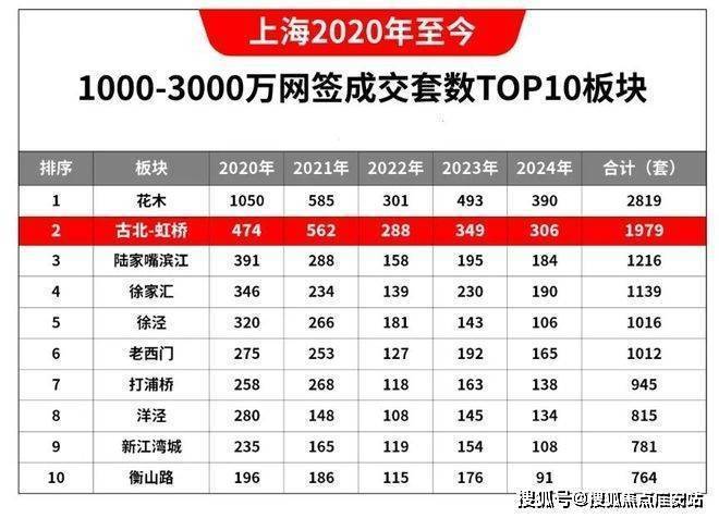 数据显示,2020年至今,上海1000-3000万价格段的二手房网签成交量中,古北连续5年高居全市第二,仅次于面积和楼市体量都远超古北的花木板块!