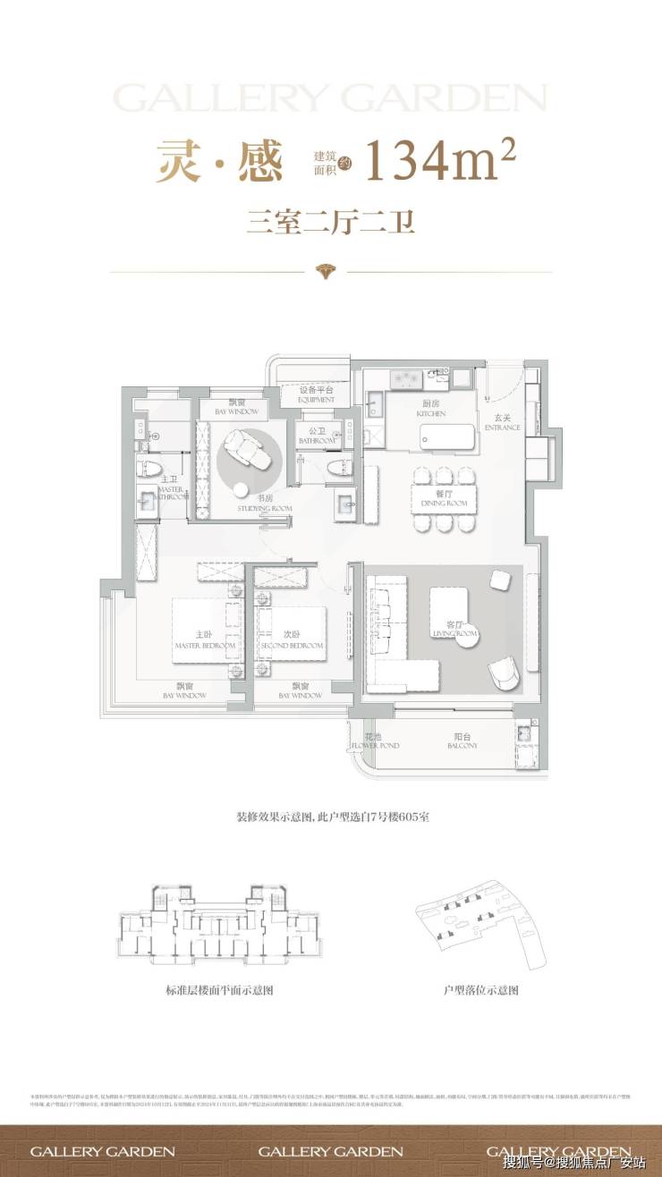 134㎡三房:客厅面宽超4.7米,预留岛台位置,主卧面宽超3.6米并配置270°飘窗,采光与视野俱佳。