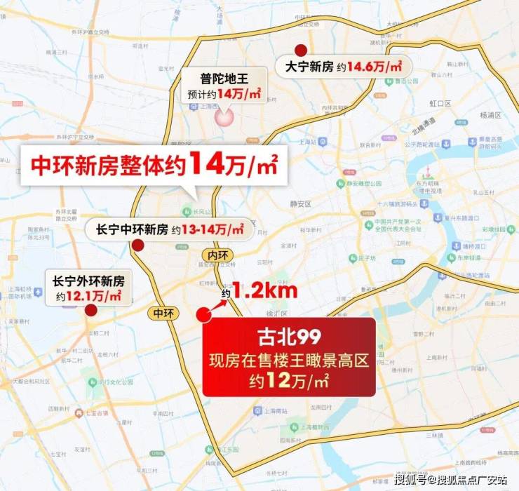 当下内环旁新房价全面重塑:大宁14.68万/㎡、普陀真如地王预计14万/㎡、长宁贴中环项目13-14万/㎡,中环线新房基本站稳14万/㎡梯队。