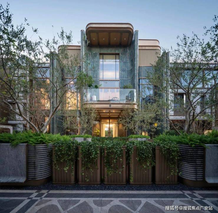 尤其是项目的建筑立面:巴西进口亚马逊绿奢石、弧角玻璃和铝板,这样颠覆性的组合在外环别墅项目中,可以说是非常少见的存在!