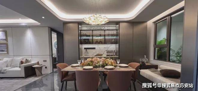 四开间朝南、餐客厅一体化设计,马可波罗地砖,定制背景墙交付,大面积落地窗,使整个视野非常通透。