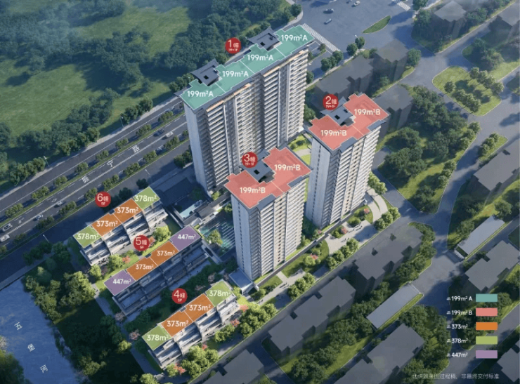 【户型面积】高层约199㎡+排屋约373-447㎡