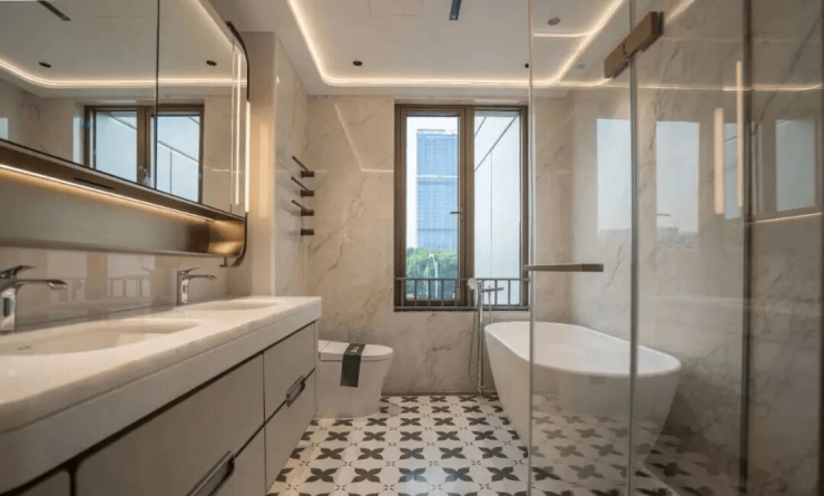 室内精装大量使用石材,除了大门、公区、会所等区域,室内空间同样精心运用了皇家白玉、劳力士灰、安第斯雪景、希腊木纹等高端石材,其独特纹理与温润质感,为空间注入了自然优雅的格调。在大型设备方面,大金中央空调、菲斯曼地暖、霍尼韦尔新风系统等国际品牌产品,彰显了不凡的品质。厨房配置了方太油烟机、燃气灶,以及博世蒸烤一体机、洗碗机、冰箱等高端电器。卫生间则选用了杜拉维特盥洗盆、马桶、浴缸,搭配汉斯格雅龙头、淋浴花洒,在同价位项目中实属罕见。