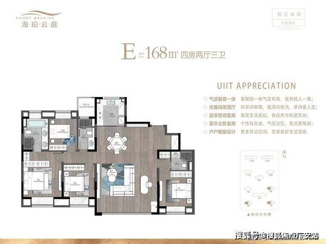 【建面168㎡4居】330.0-400.0万-分布于3#1#,2梯2户,层高3.05米,总楼层15F