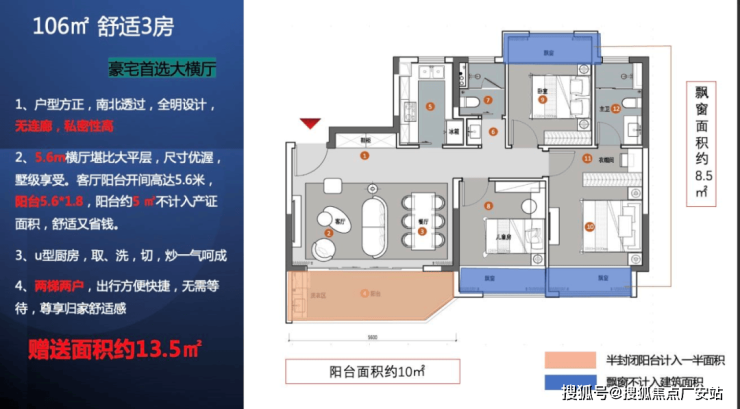 ③空间利用率:避免“异形户型”(如三角形、多边形房间),此类户型家具难摆放,空间浪费严重;优先选择“方正户型”(房间长宽比接近1:1.5,如卧室宽3.3米、长4.5米,方正且实用)。此外,注意“赠送面积”的实用性——如“赠送露台”若无法封闭,雨天易积水,实际使用价值低;“赠送飘窗”若高度超过0.45米,无法作为座椅或储物空间,仅为“装饰性”,需理性看待。