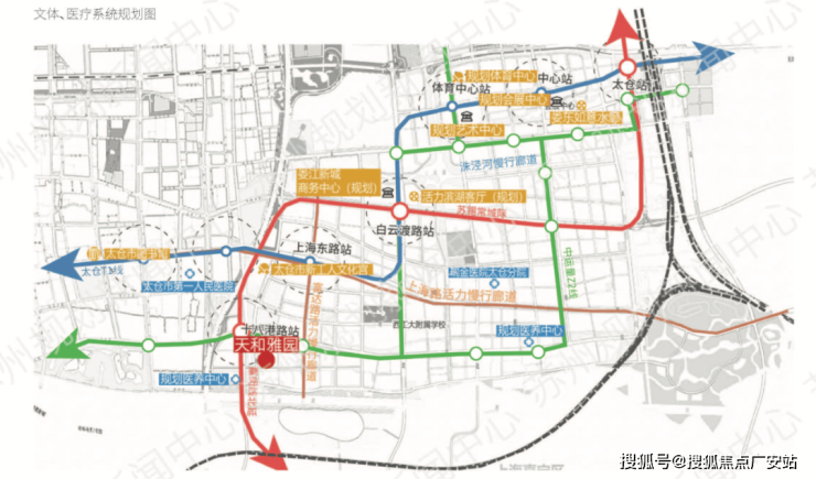 (天和雅苑附近文体与医疗规划示意图)