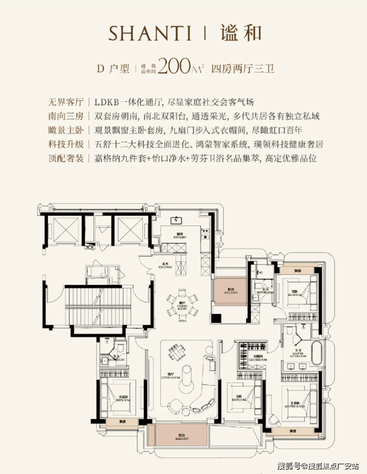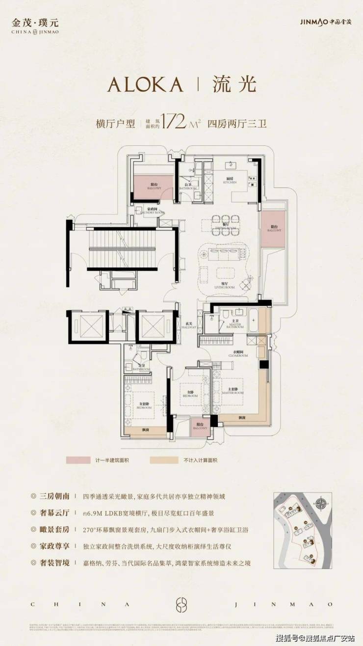172㎡ 四房:2615–3194 万,7.2 米环幕横厅、270° 视野