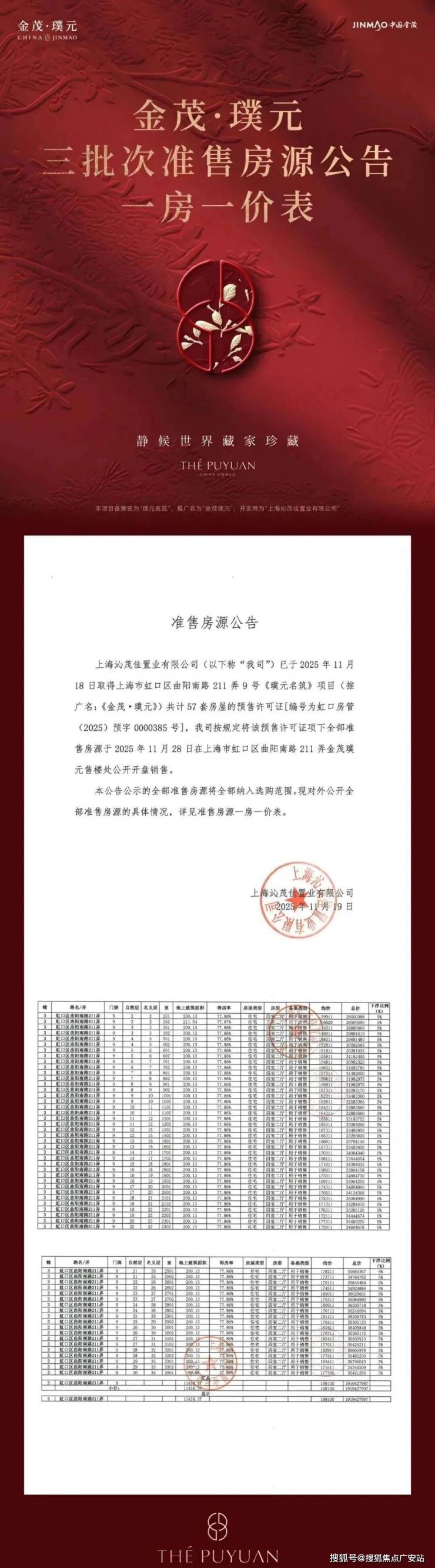 10天劲销7.2亿,单日认购6组!内环内瑞虹奢宅【金茂璞元】四批次103席,约130-240㎡户型 热销中