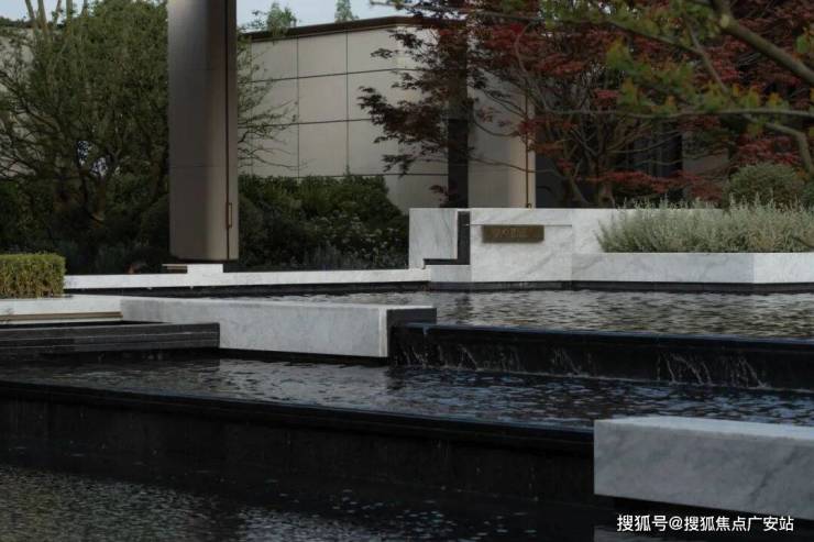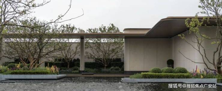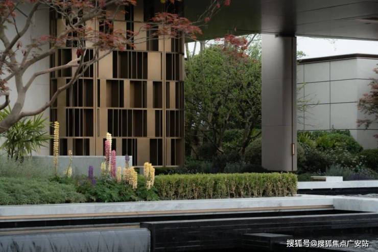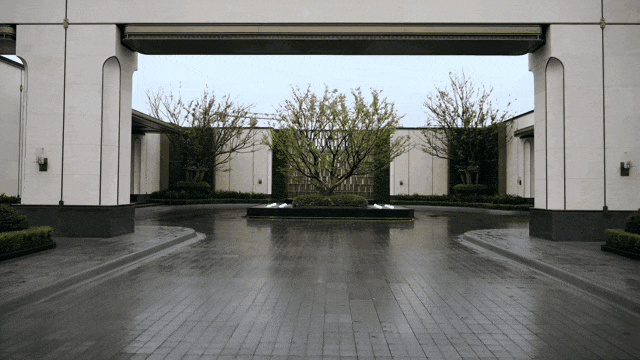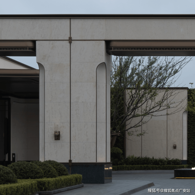 艺术连廊以极简的单臂廊形式创造雅居,移步异景,轻奢立面石材确立海派基调,花境、流水、鸟鸣,水院里的柔软元素,在归家路径中随感官传入内心。