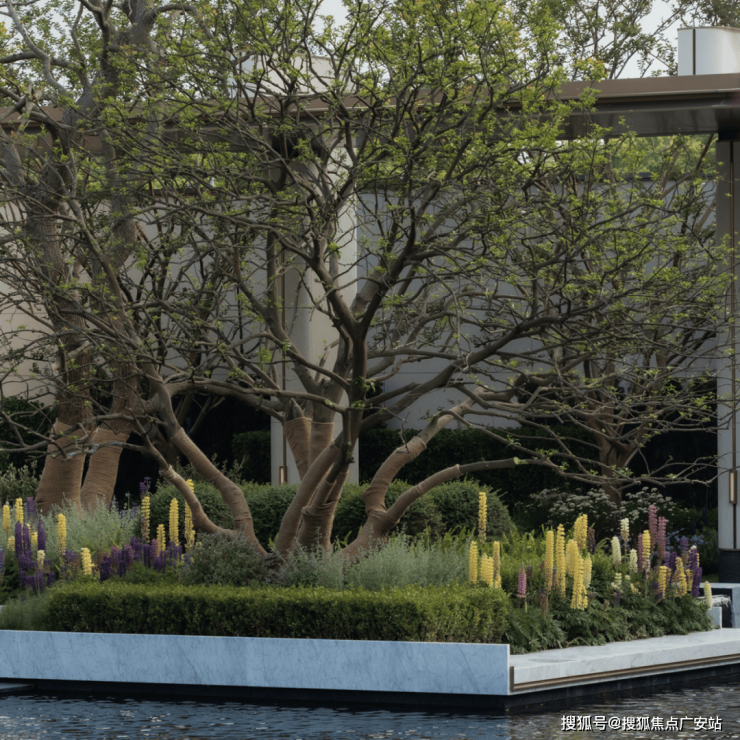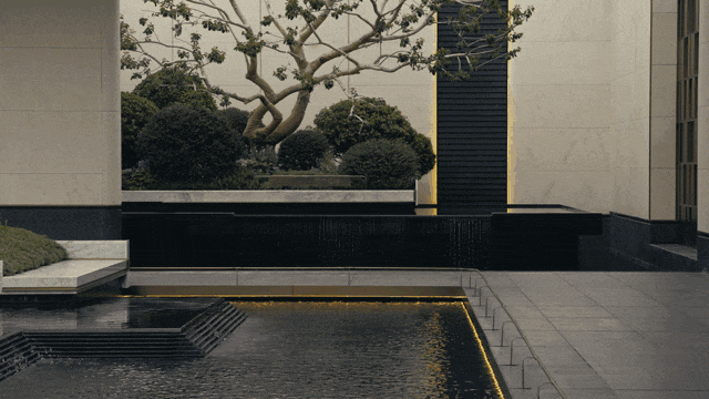 步入水院,沉浸其中,细节彰显秩序之美。通廊尽头,特选造型铁冬青,呈迎宾姿态,敬待归宅。