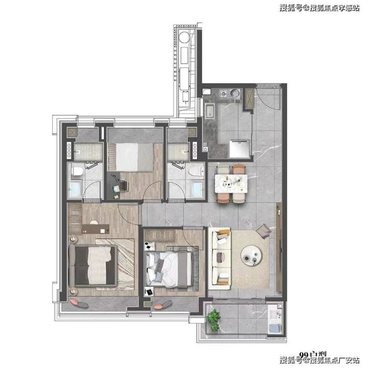 户型:首开将推出建面约87-99㎡3房,均价约7.9万/㎡!