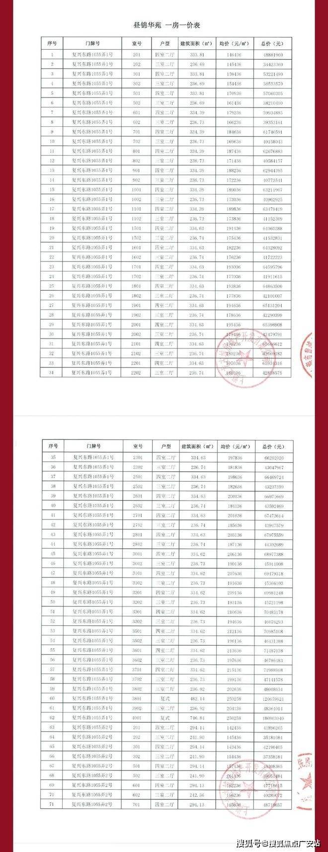 四批次一房一价表