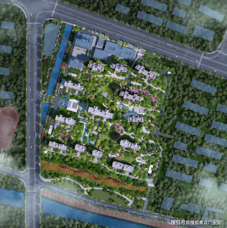小区整体布局,采用南低北高的分布极大的保证采光和视野的通透性。