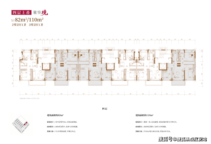 建面约82㎡2房2厅2卫/110㎡3房2厅2卫(四层上叠):