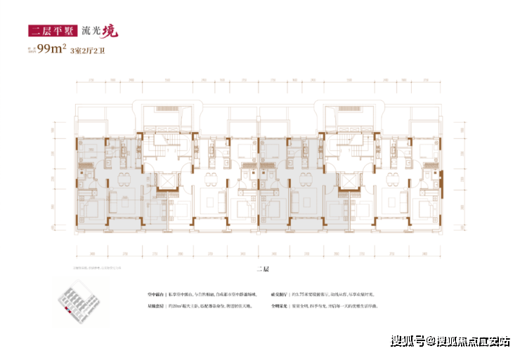 建面约80㎡2房2厅2卫/110㎡3房2厅2卫(二层平墅):
