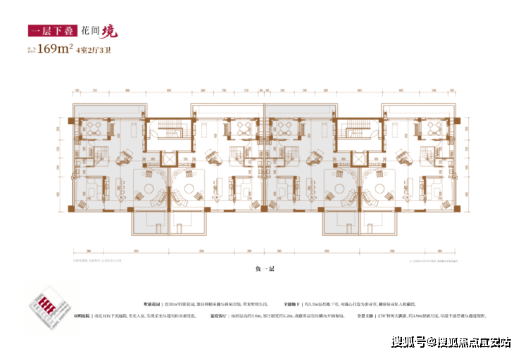建面约169㎡4房2厅3卫(一层下叠):