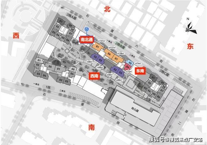 项目位于福田区石厦北二街与福民路交汇处,西侧和北侧是石厦村,南侧为益田名园小区和深圳妇幼保健院,东侧是新新家园和红岭中学初中部。项目总占地约2.1万㎡,由4栋塔楼和1个幼儿园组成,采用围合式布局。目前推售的是位于社区正中央的2栋B座,共235套房源。