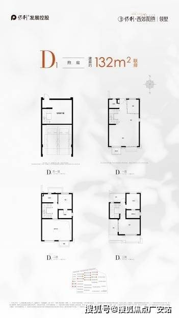联排别墅:建面约132-195㎡,总价900万级起,含前庭后院、南北双星空露台及地下室(毛坯交付)
