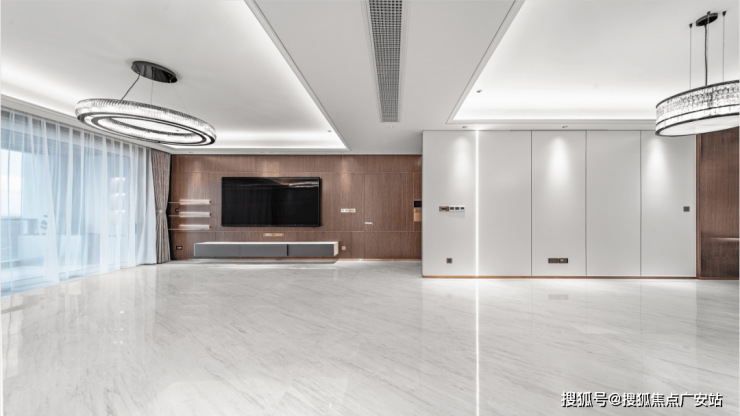 将近6米宽的大客厅,可以随便躺平2个半姚明,思聪同款价值50万的98寸电视放着都显小。