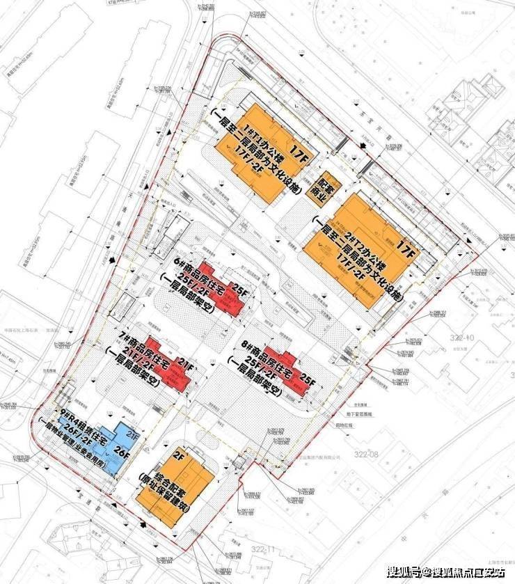 根据设计方案,322-09地块拟建设2栋办公楼、3栋21F和25F住宅,1栋租赁住宅(含物业配套用房)、1栋保留住宅.
