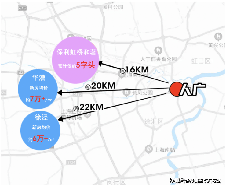 4)再看大虹桥区域内的价格梯队, 徐泾的新房均价已破约6万/㎡,花漕的新房房价也超过约7万/㎡,而 保利虹桥和著售价预预计仅约5字头 ,拥有更大的价格优势。这样的价格潜力, 未来增值潜力巨大!