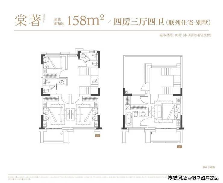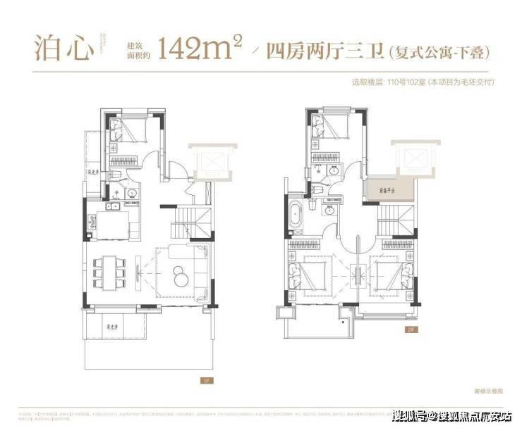 叠墅:叠墅一共四层,分为上/下叠,上叠建筑面积约139㎡,下叠建筑面积约142㎡。