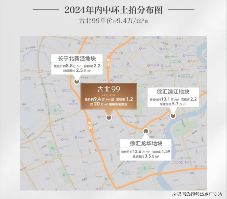 古北芯:徐汇 / 长宁 / 闵行三区交界,古北国际社区内稀缺新盘,距内环约 1.4 公里