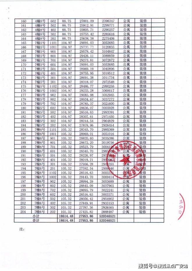 项目一房一价表