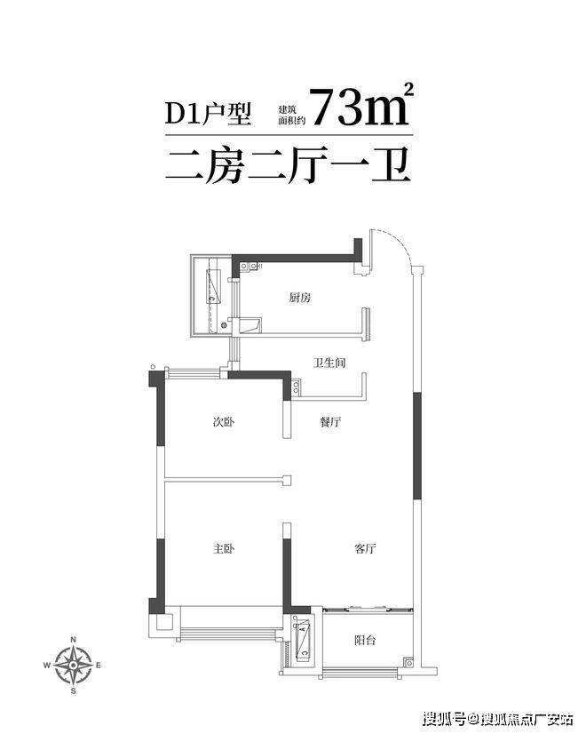 建筑面积约73㎡舒适两房一卫,年轻家庭的向往