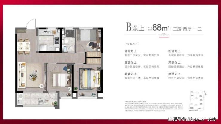 现在深业·深安上居建面约88㎡户型就实现3房功能性,建面约98㎡3房户型更实现主卧套房设计!既满足市场主流需求,又带来进阶改善品质。