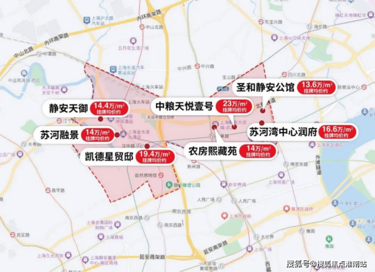 再来看板块内的标杆住宅,中粮天悦壹号挂牌均价23万+,凯德星贸邸19.4万+,苏河湾中心润府16.6万+,这片无数高净值人群聚集的土地,早已形成高端住宅的圈层氛围!
