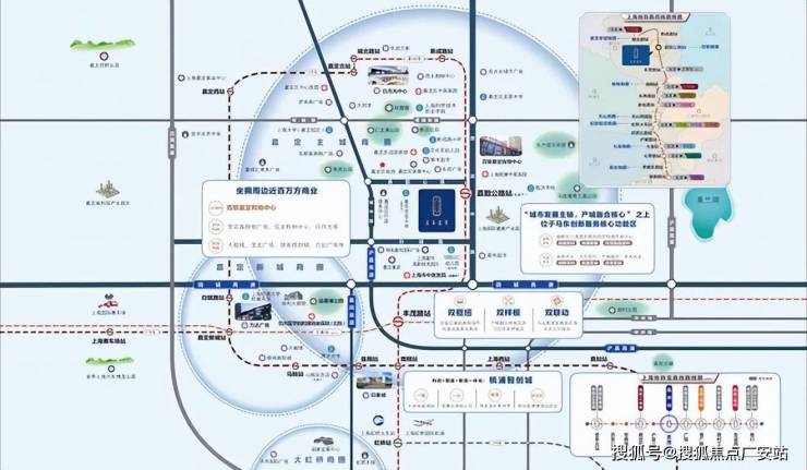 距众禾嘉苑仅一站的丰茂路站,即为一主二辅枢纽体系中的嘉定东枢纽,是嘉闵线、宝嘉线的换乘站,可为新城提供直达苏锡常的大容量、高可靠公共交通服务,是嘉定新城最具潜力的核心引擎。