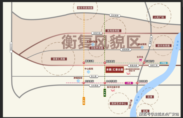 汇景云庭紧挨着徐汇区复历史风貌区,即景泰大厦坐落于斜土路1175号,步行500米就可以到达9号线和12号线嘉善路站,2站可达徐家汇商圈、南京西路商圈。距离地铁4号线约800米、13号线约1.5公里,内环内得天独厚的地理位置。毋庸置疑这样的地段享受的必然也是城市塔尖级的高能配套。