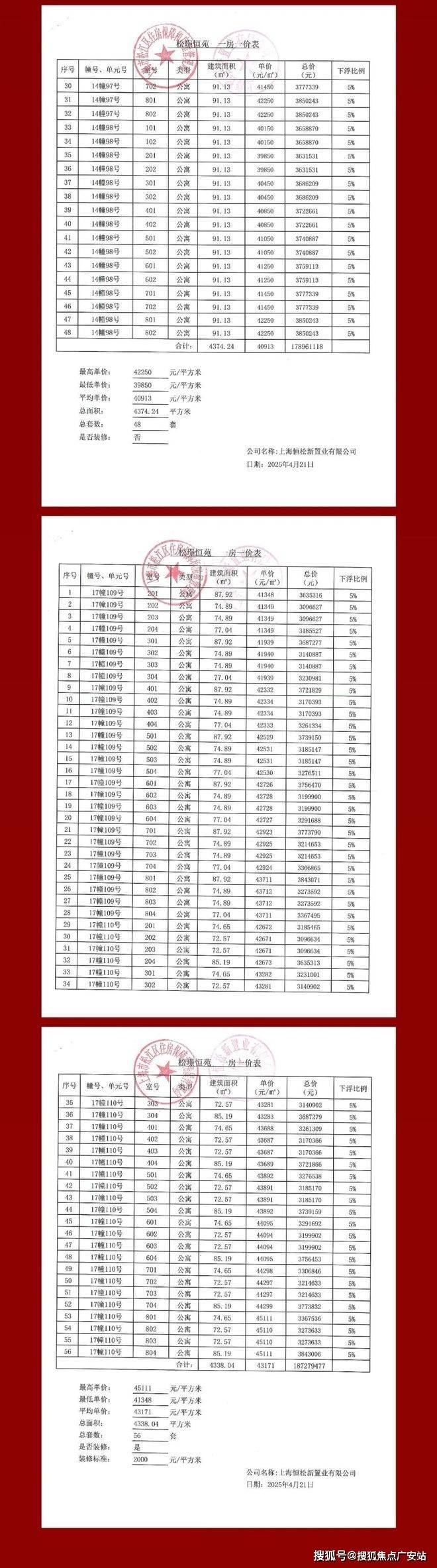 一房一价表