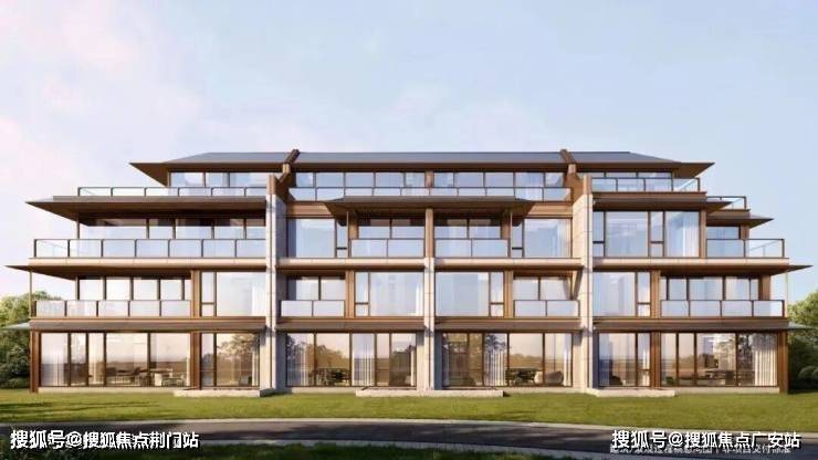建筑立面,整体延续鸣湖里的设计语言,以大面low-E玻璃、香槟金铝板、暖白色石材搭配灰色金属铝板线条勾勒,更融入时尚元素,打造出潮奢宋韵纯低密住区。